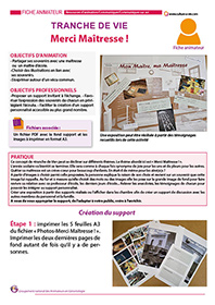 L’année scolaire va bientôt se terminer. Elle sera comme à chaque fois synonyme de joie pour les uns et de pleurs pour les autres. Quitter sa maîtresse est un crève-cœur pour beaucoup d’enfants. En était-il de même pour les aînés ? Cette animation s’appuie sur des images et un support à composer facilitant les échanges, les anecdotes et les souvenirs. Chaque personne dispose d’un support de fond vierge et des photos sont proposées au centre de la table. Chacun leur tour les résidents vont choisir une image en lien avec le thème proposé et justifier de leur choix par un vécu (Je me souviens de Mme …. qui nous félicitait en nous donnant des images; C’est grâce à Monsieur que j’ai aimé le français ; Les derniers jours d’école il fallait nettoyer les bureaux…). Au fur et à mesure des tours de table, le « Merci Maitresse » de chacun va prendre forme. Les résidents sont ensuite libres de repartir avec et de le partager avec leur entourage ou de le laisser pour créer une exposition.