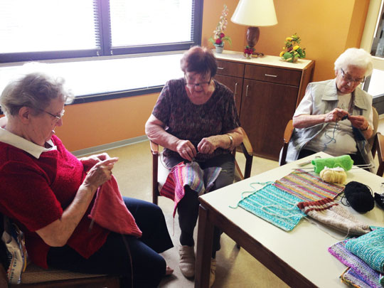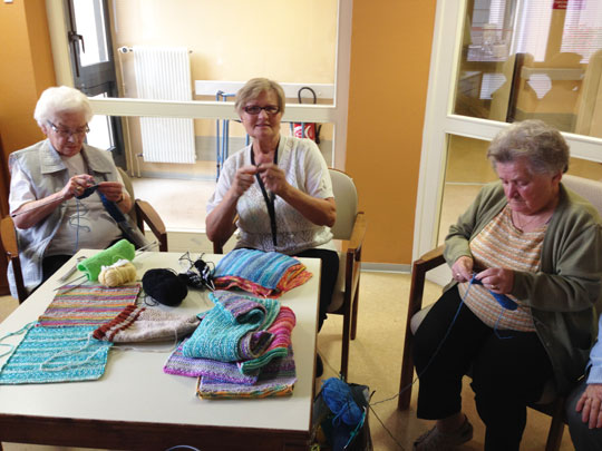 Comme dans de nombreux établissements, l’établissement où travaille Nathalie dispose d’un atelier tricot toujours bien fréquenté. En cherchant un but aux créations des dames, Nathalie s’est appuyée sur une connaissance dans le domaine de l’humanitaire pour créer un lien entre la résidence et un village Népalais. C’est ainsi que les carrés de laine se sont transformés en écharpes et autres bonnets pour venir combler des enfants défavorisés du bout du monde.