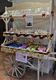 Une charrette pour vendre les réalisations des résidents