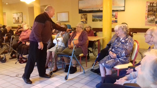 Passionné par la chanson Thierry Bouvier chante régulièrement dans les établissements pour personnes âgées. Dans un répertoire musical allant des années 30 à nos jours, il propose des musiques adaptées aux résidents. Par leur personnalité humaine et chaleureuse ils proposent une interaction avec les personnes en les faisant participer aux choix des chansons, et les faisant chanter avec eux. Toujours en direct, Thierry allie le chant au synthétiseur pendant que son compagnon de chant s’occupe des interactions avec le public. Dans le souci d’être à l’écoute des aînés, sur leur répertoire de 850 morceaux, ils ont toujours dans leur manche une ou deux chansons à destination des aînés d’origine italienne ou espagnole. Temps d'intervention : 1h30 Zone d’Intervention : départements 73, 74, 01 et 38 Recommandé par la Résidence Maurice Perrier à Châtelard (73) et l’Ehpad les belles saisons à Aiguebelle (73) Coût présentation : De 100 à 130€ Contact : tel : 06.20.66.26.72