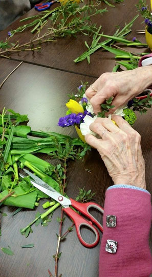 Véronique, fleuriste professionnelle, intervient auprès des résidents pour animer des ateliers de composition florale. Patiente et pédagogue, l'intervenante aide les résidents lorsque ceux-ci rencontrent des difficultés pendant l'atelier, et aide chacun à progresser à son rythme. Véronique fournit également tout le matériel nécessaire au fonctionnement de l'atelier. L'activité est ouverte à tout le monde, l'intervenante s'adapte à chaque résident, lesquels sont souvent surpris de ce qu'ils peuvent accomplir. L'atelier se déroule généralement sur un thème choisi par l'animatrice du lieu d'accueil ou sur un thème particulier (noël, pâques, fêtes des grand-mères...). Temps d'intervention : environ 1 h 30 Zone d'intervention : département 77 Recommandé par les Ehpad de Vulaines-sur-Seine et de Héricy (Seine-et-Marne) Coût d'intervention : 8 € par personne (hors frais de déplacement) Infos : www.osensdesfleurs.fr Contacts : mail : verocrapart@hotmail.com - 06.16.32.10.35