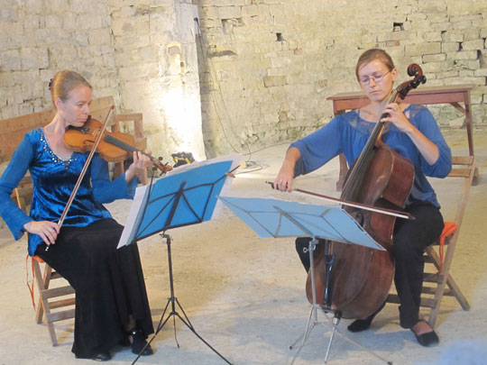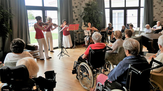 Violoniste, Laurence appartient à différentes formations ainsi elle peut intervenir aussi bien en duo qu’en quatuor ou en groupe. Dans la version duo elle propose un concert de musique avec un programme de morceaux des années 20 à 60, en français, pour faire chanter, et éventuellement danser. Dans la version à quatre musiciens, elle propose des pièces classiques célèbres de toutes époques, ainsi que des valses, tangos et ragtimes. Dans un autre registre, Laurence peut intervenir avec son groupe de musique klezmer, d'origine yiddish, tzigane et des Balkans avec chants et danses, interprétés par une dizaine de musiciens amateurs et professionnels. Des prestations très appréciées des aînés qui découvrent ici un univers différents et agréable. Temps d'intervention : environ 1 h 15 Zone d'intervention : départements : 26/84/07/ 85 Recommandé par l’Hôpital de Dieulefit (26), l’Ehpad Leis Eschirou à Dieulefit (26), EPHAD Villa Beausoleil à Notre Dame de Riez (85) Coût présentation : de 300 à 500€ en fonction de la prestation demandée Contacts : mail : l.gaia@free.fr - Tel : 04 75 04 75 70 Site http://duo2g.blogspot.fr/ http://arom-yiddish.blogspot.fr/